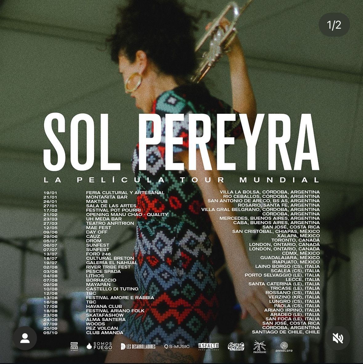 These 5 albums have been presented by Sol in many stages in Argentina, Bolivia, Peru, Chile, Brazil, Panama, El Salvador, Cuba, Colombia, Ecuador, Mexico, Spain, France, Italy and the USA. She has also participated in famous international festivals such as Vive Latino, Cosquín Rock, Ariano Folk Festival, SXSW, Carnaval de Olinda, Capital Festival, Baradero Rock and SIM, among others.